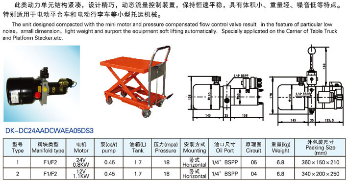 小型平臺車 行李車專用液壓動(dòng)力單元